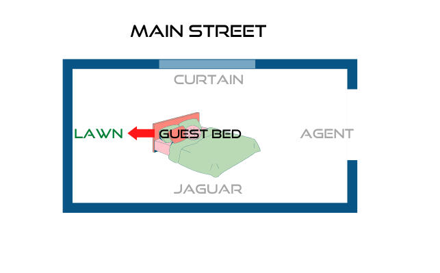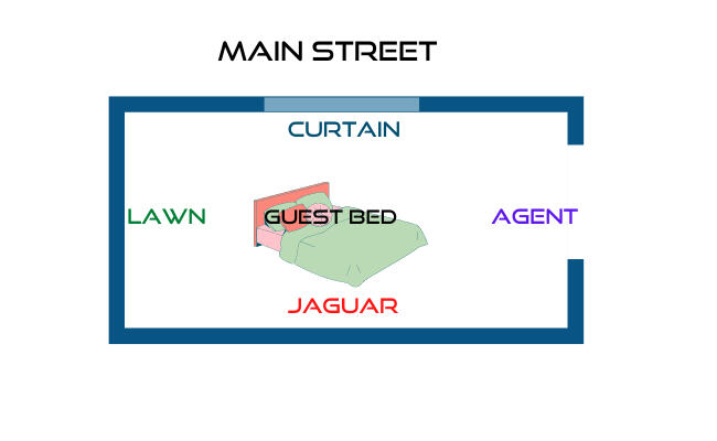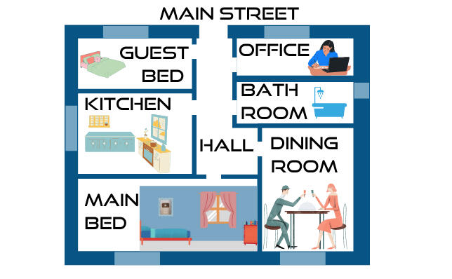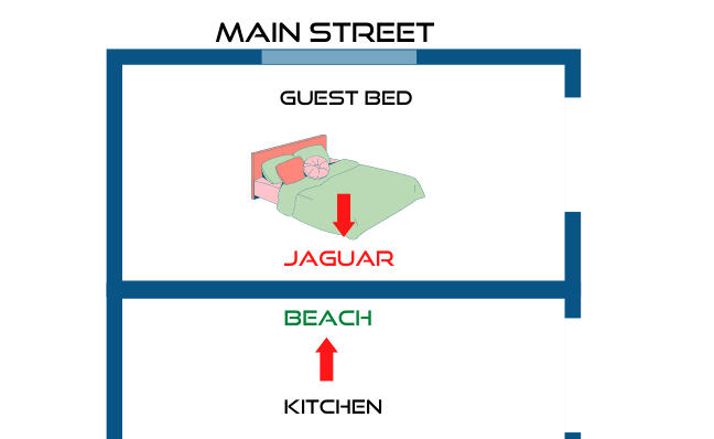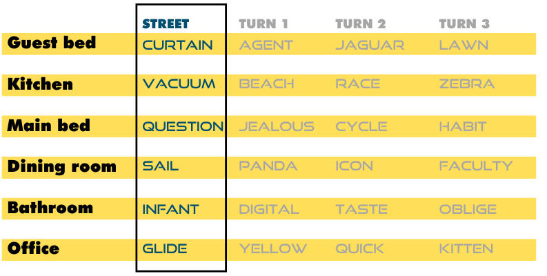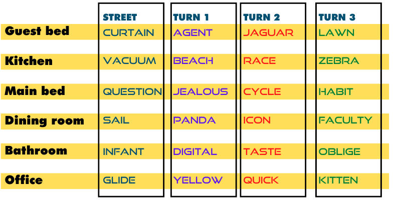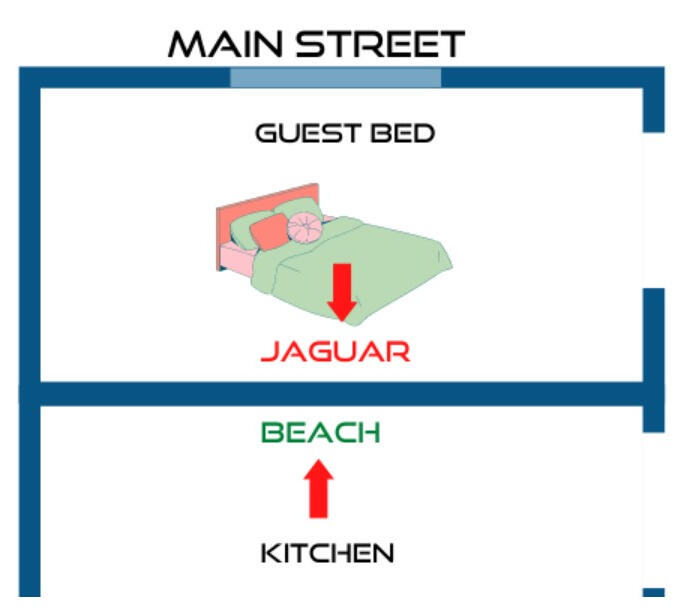 Link words which share a common wall.In our imaginary home, the Guest Bedroom is next to the Kitchen