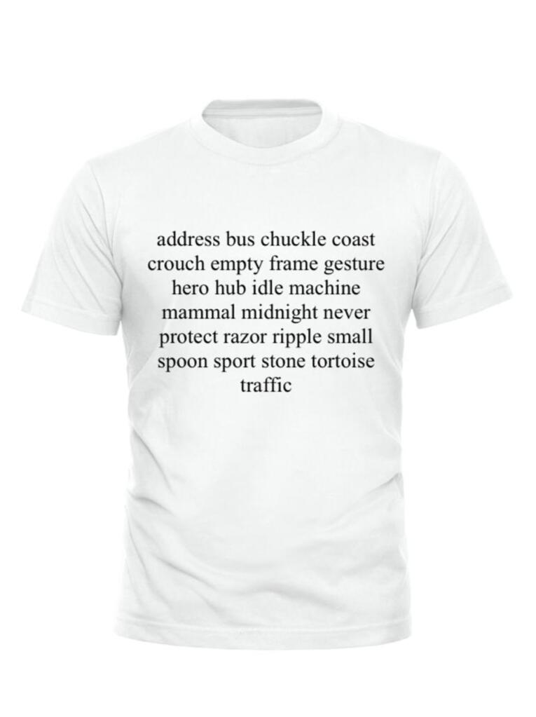 This T-shirt displays a real seed phrase for a Bitcoin wallet containing 1M sats.