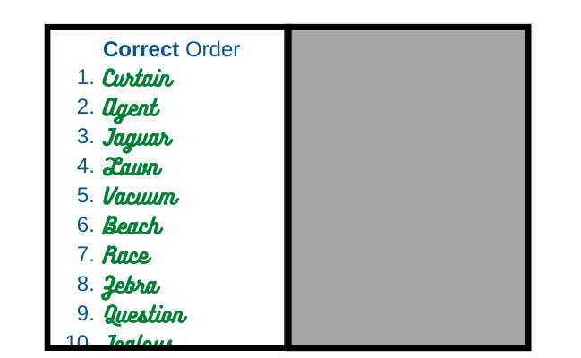 then we know exactly how each word is written.Nobody else will know the correct sequence.You will see the word Curtain now appears in the third position