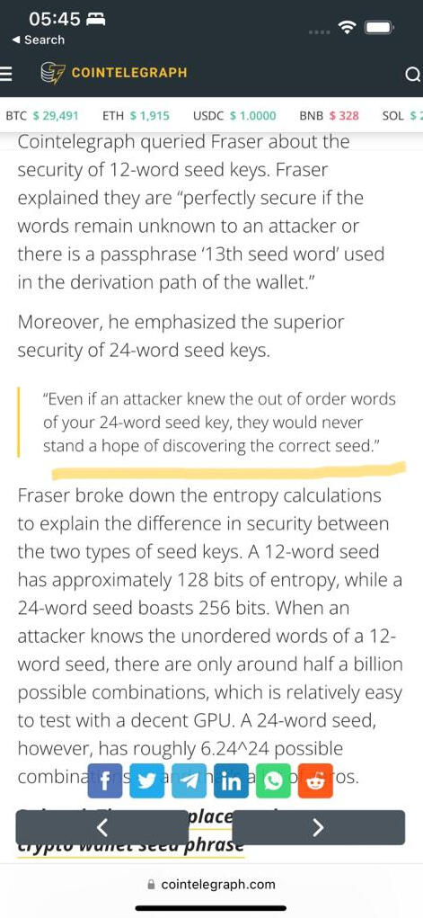This expert cracked a 12-word seed phrase easily. But even they agree there is no chance with a 24-word seed phrase.